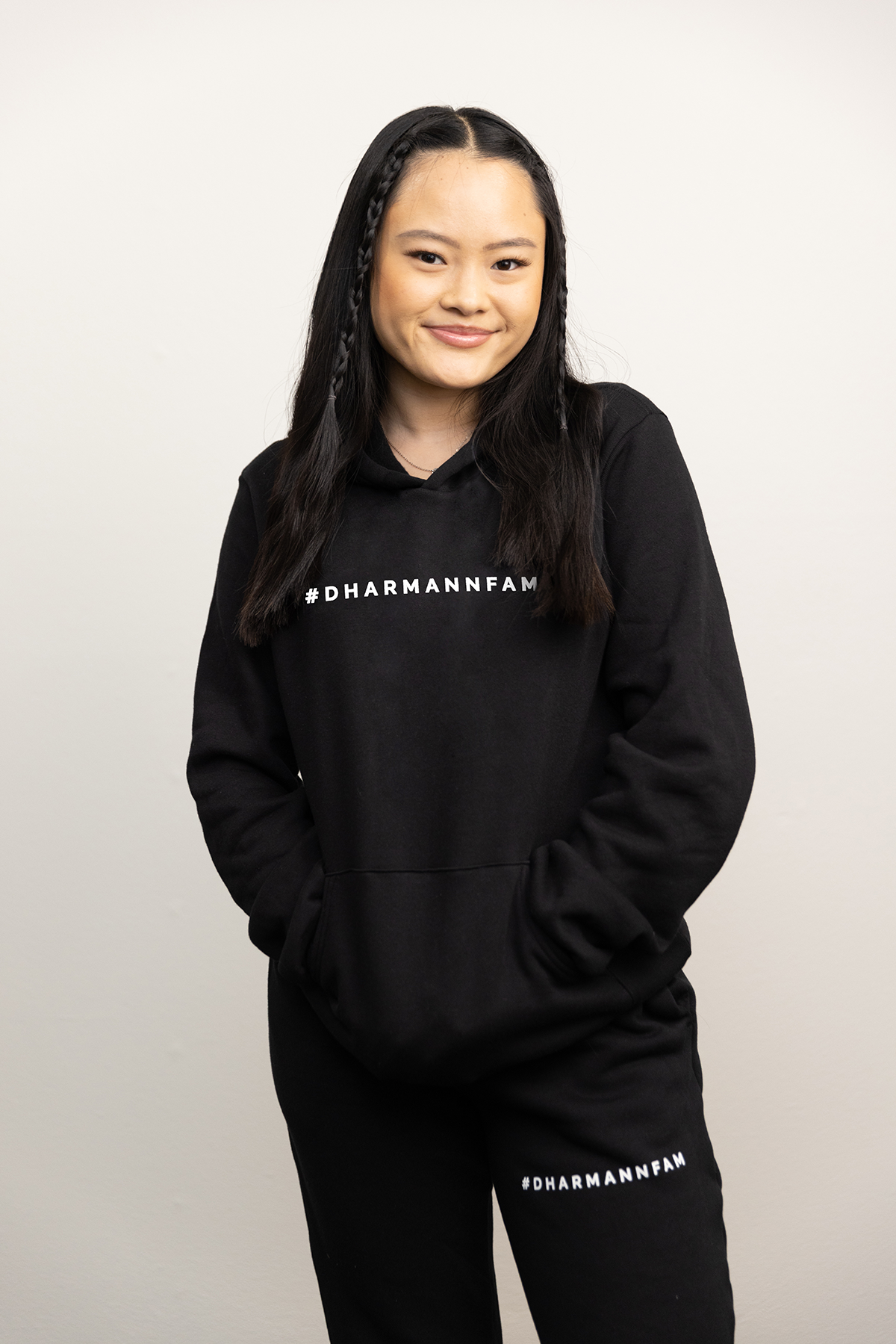 Hey #DharMannFam! Our pull over hoodie will keep you cozy and comfortable this winter. This cotton blend hoodie features our popular hashtag to represent our amazing community!