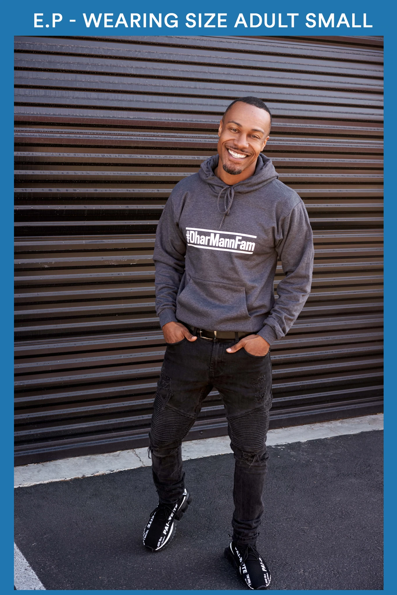 Hey #DharMannFam! Our pull over hoodie will keep you cozy and comfortable this winter. This cotton blend hoodie features our popular hashtag to represent our amazing community!
